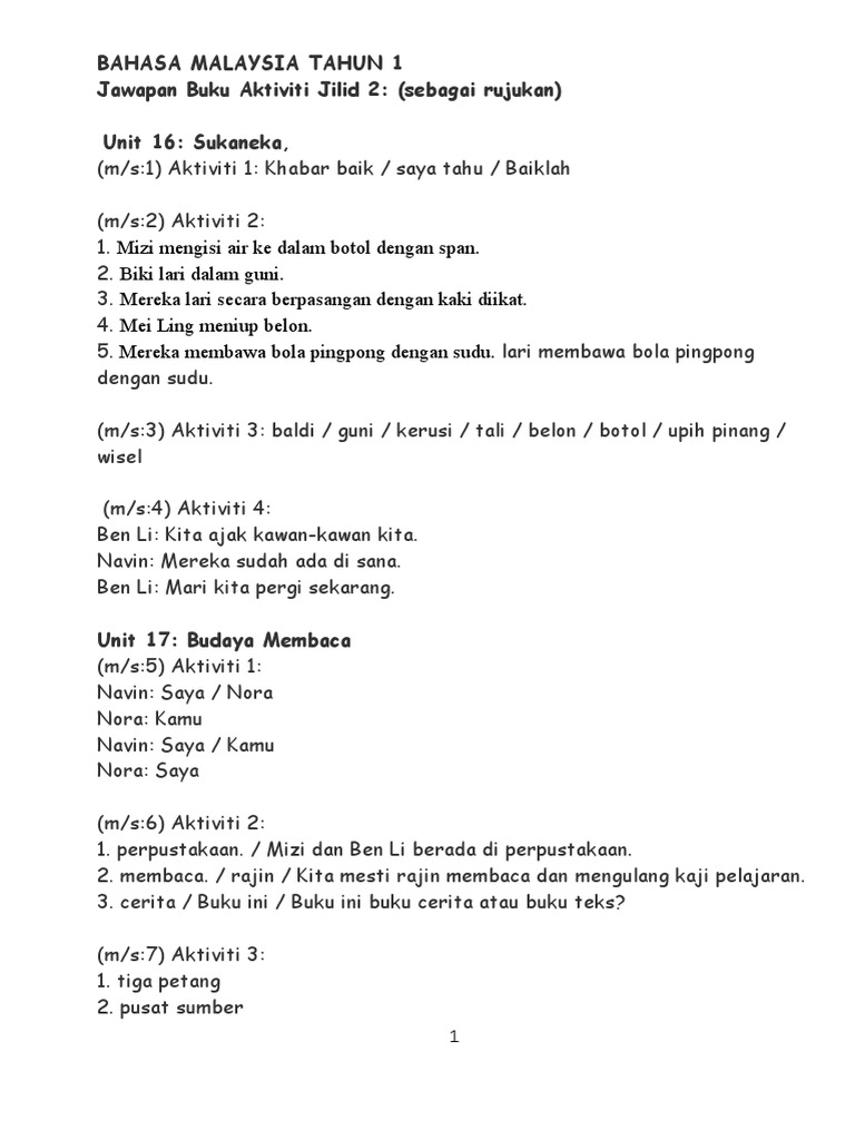 Bahasa Melayu Buku Aktiviti Tahun 1 Jilid 2 Jawapan Aktivitiblog